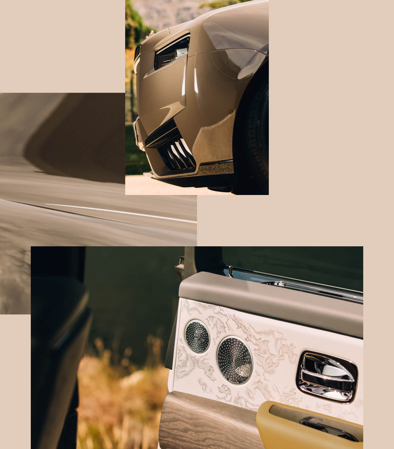 Vertical headlights and daytime running lights borrow inspiration from the towering skyscrapers of urban landscapes. The iconic Illuminated Grille — seen for the first time on Cullinan — is refreshed with a lower leading edge and a geometric ‘horizon line’.
